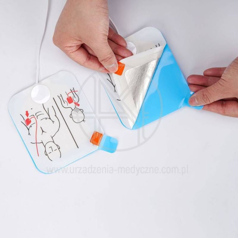 Elektrody są fabrycznie wyposażone w kabel przyłączeniowy, który może być podłączony do urządzenia już na etapie przygotowania AED. Dzięki temu elektrody są gotowe do użycia od razu, co pozwala skrócić czas działania w sytuacji zagrożenia życia.