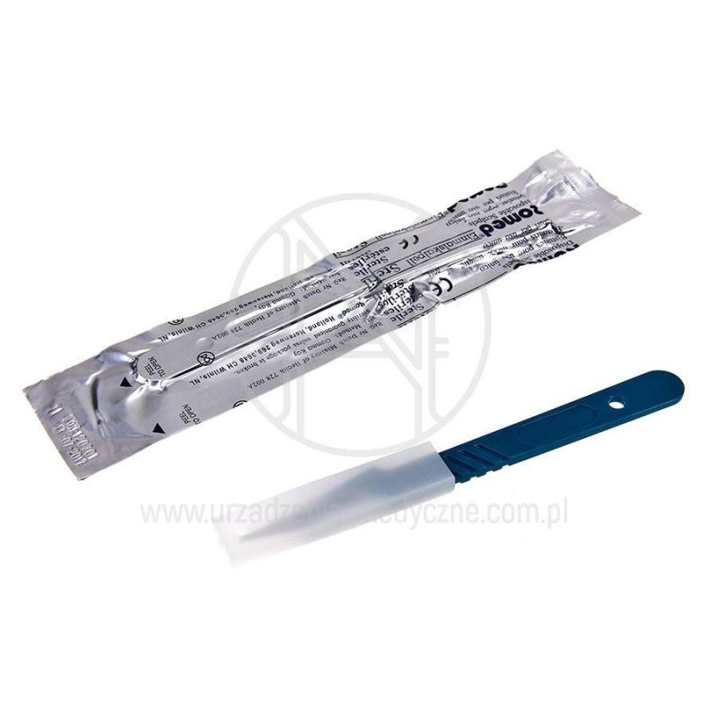 Skalpel pakowany jest indywidualnie i sterylizowany radiacyjnie metodą gamma. Przeznaczony wyłącznie do jednorazowego użytku.