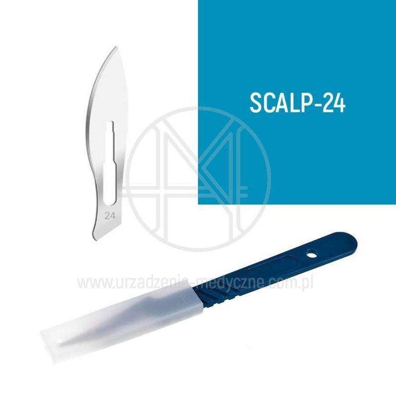 Skalpel chirurgiczny jednorazowy kompletny z plastikowym trzonkiem i fabrycznie zamocowanym ostrzem. Sterylizowany radiacyjnie (Gamma), przeznaczony do jednorazowego użycia. W ofercie dostępne są skalpele nr 10, 11, 12, 15, 20, 21, 22, 23, 24.