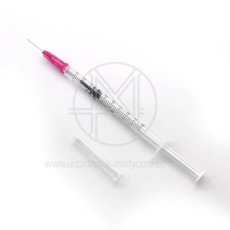 Strzykawka tuberkulinowa 3-częściowa z igłą 29G × 0,5" (0,33 × 13 mm) o pojemności 1 ml, wyskalowana w ml. Sterylizowana EO, przeznaczona do jednorazowego użycia.